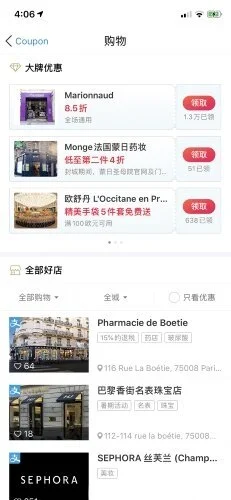 Dank der Suchleiste können chinesische Touristen Ihr Geschäft anhand der von ihnen gesuchten Kategorie finden, was Ihr Geschäft bei der Suche nach Produkten und Marken hervorhebt.
