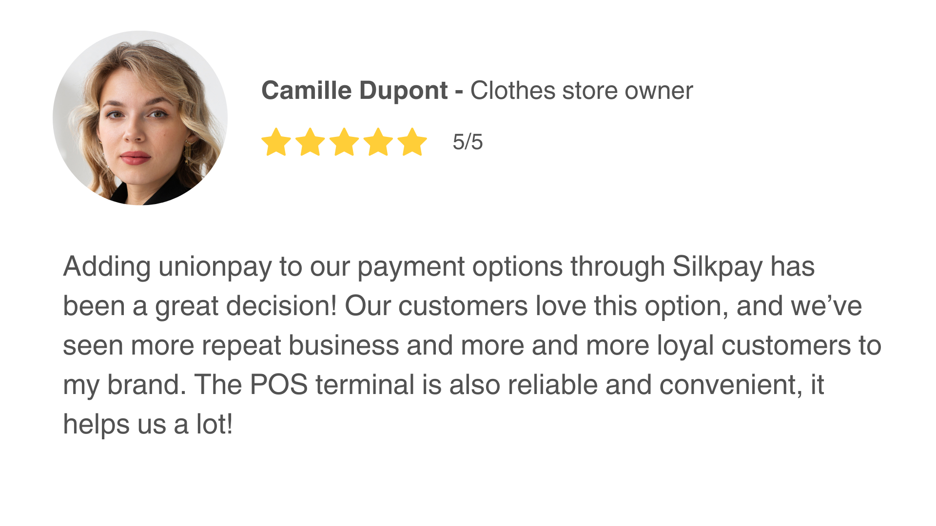 Jedes Unternehmen, jede Vereinigung oder jeder Unternehmer kann UnionPay im Geschäft oder online akzeptieren, um den Kaufprozess für ihre chinesischen Kunden in jedem Kanal zu vereinfachen.